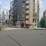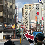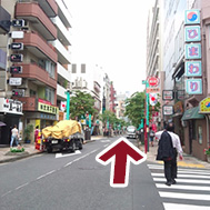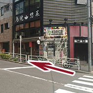 目の前の交差点を「金の餃子酒場」に向かって信号を渡り真っ直ぐ進みます