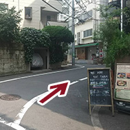 「WE ARE THE FARM 恵比寿」さんの角を右に曲がって道なりに少し進んでください。左手には「ベロニカ」さんがあります